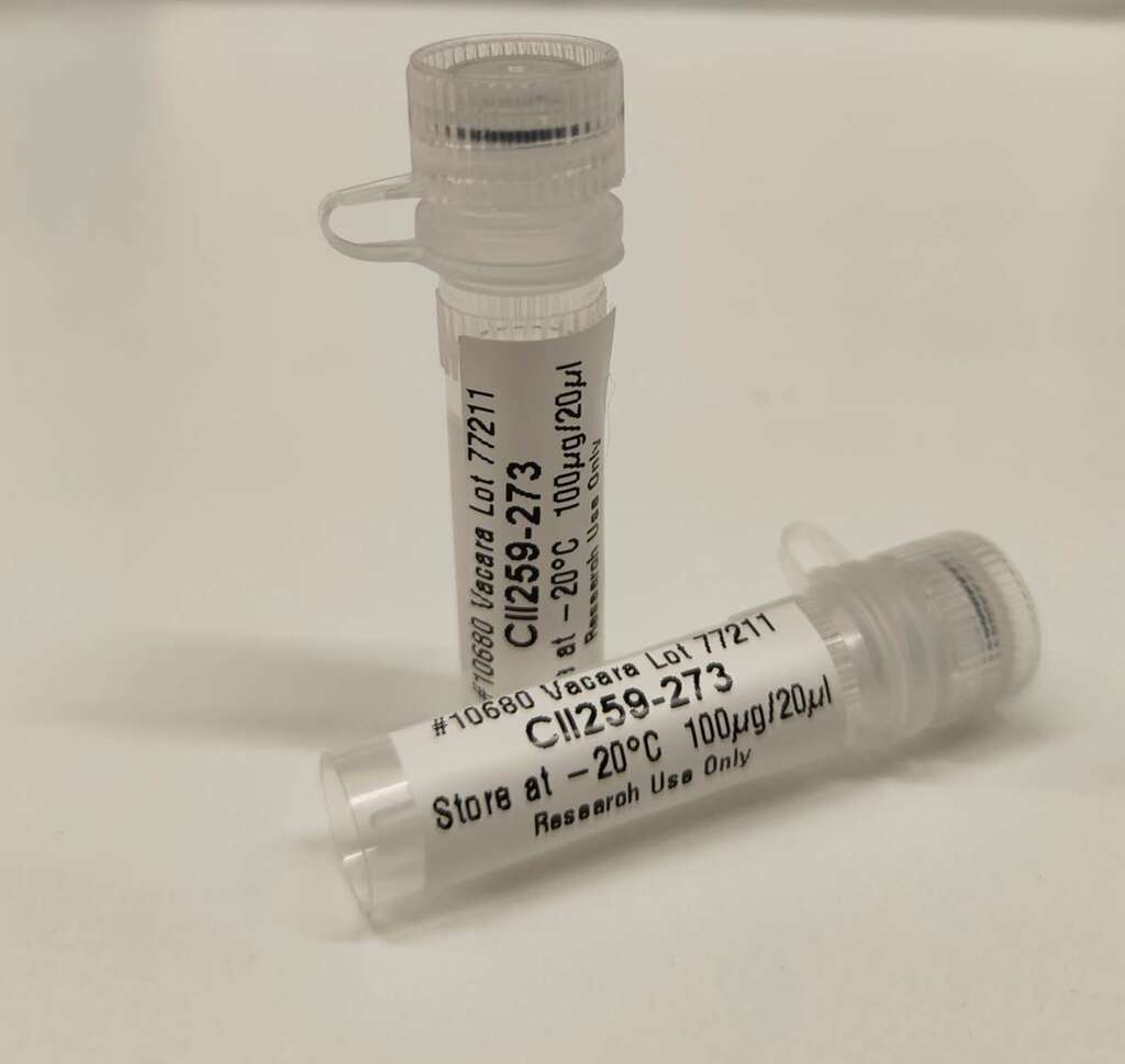 The CII peptide (CII259-273) contains the 259 to 273 sequence of rat CII. It is the non-galactosylated peptide that is ideal to serve as the control peptide for the Galactosylated CII peptide (CII259-273-GalHyl264; product numbers #10510 and #10550).